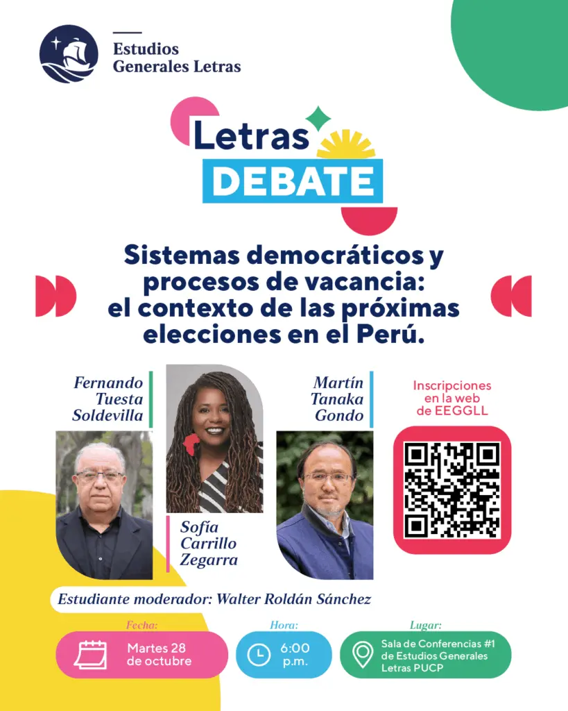 “Letras Debate” está planteado como mesas de diálogo en el que puedan participar nuestros estudiantes como moderadores y como público asistente, que reflexiona y interpela sobre diversas temáticas. En esta ocasión, presentamos la primera mesa de diálogo sobre los “Sistemas democráticos y procesos de vacancia: El contexto de las próximas elecciones en el Perú».