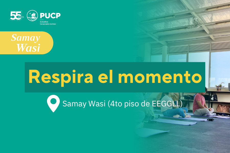 Desde la Oficina de Promoción Social y Actividades Culturales – Oprosac, te invitamos a ser parte de las sesiones de Respira el momento: Técnicas de respiración y meditación para manejar el estrés facilitado por Fiorella Leon y Adriana Valdivieso. Estas sesiones se realizarán en el Samay Wasi (ubicado en el 4to piso de EEGGLL). Te compartimos los detalles: